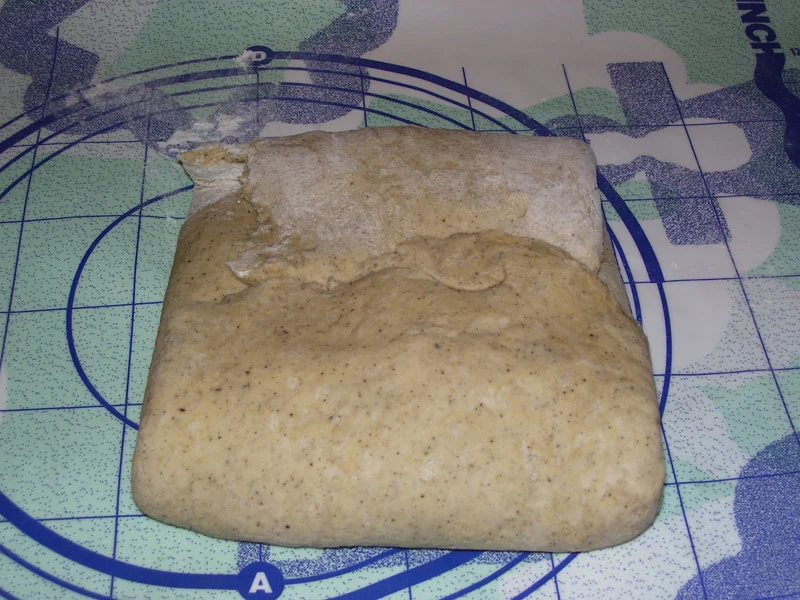 Összegyúrjuk, és legalább egy órát állni hagyjuk. (én ez idő alatt 2x meghajtogattam a tésztát)